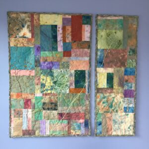 I am committed to bringing peace to the world through art. Each of my works is created in a peace-filled, uplifting, positive, joyful environment. This inspiring energy becomes infused into the art piece. I enjoy creating contemporary fabric art that has visual and/or actual textural elements. These elements often include beads, vintage buttons, feathers, hand-painted and manipulated fabric, yarns, and found objects. My art is eco-friendly. I create with recycled and repurposed items as much as possible. I love the play of textures and colors found in nature. I am influenced by African, Asian, & Tibetan cultures.