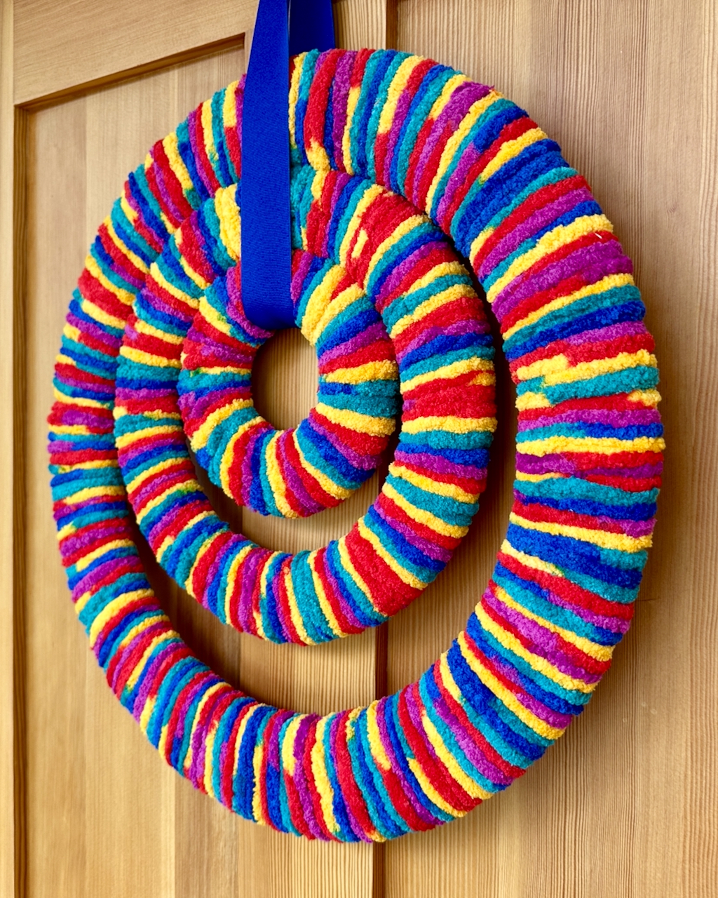 I create handmade wreaths and garlands using yarn, ribbon, and fabric. Most of my desgins have a modern, minimal aesthetic. I draw inspiration from Scandinavian and midcentury designs. Whenever possible, I use upcycled materials for my creations.