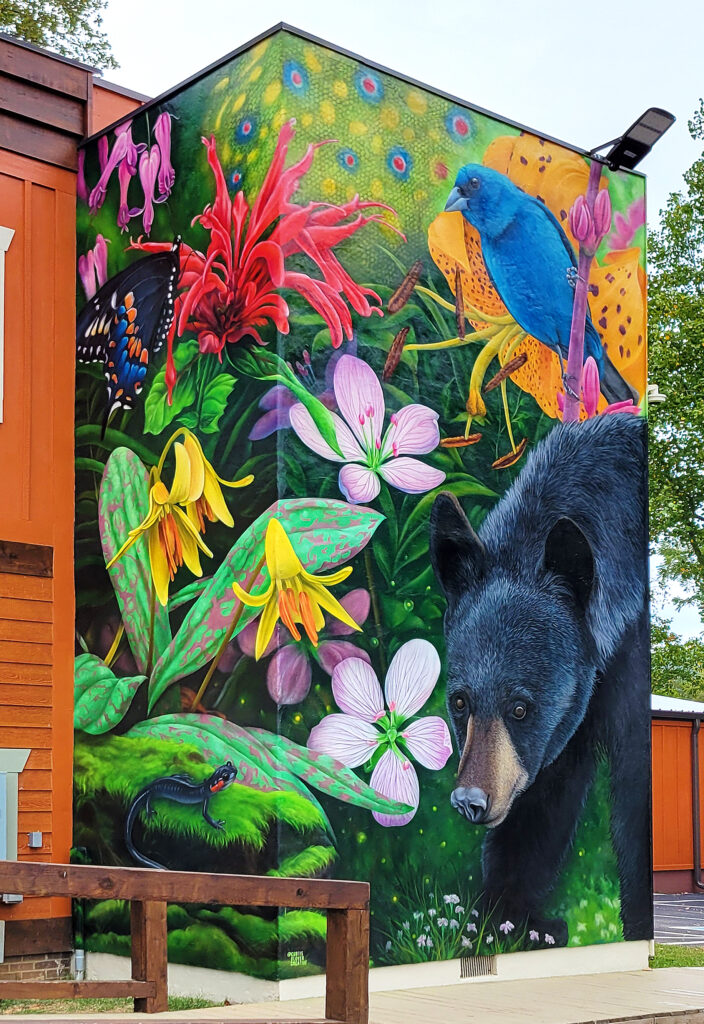 Curtis Glover has been painting large-scale murals around the state of Tennessee and beyond since 2016. Based in Knoxville, he has been able to tackle various client requests for commercial, public and private art. His work can be seen in or on multiple buildings across the city including restaurants, hotels, and schools. Glover works primarily in acrylics and spray cans while blending multiple layers to provide depth in his content which consists of nature, people, youthfulness and civic pride.