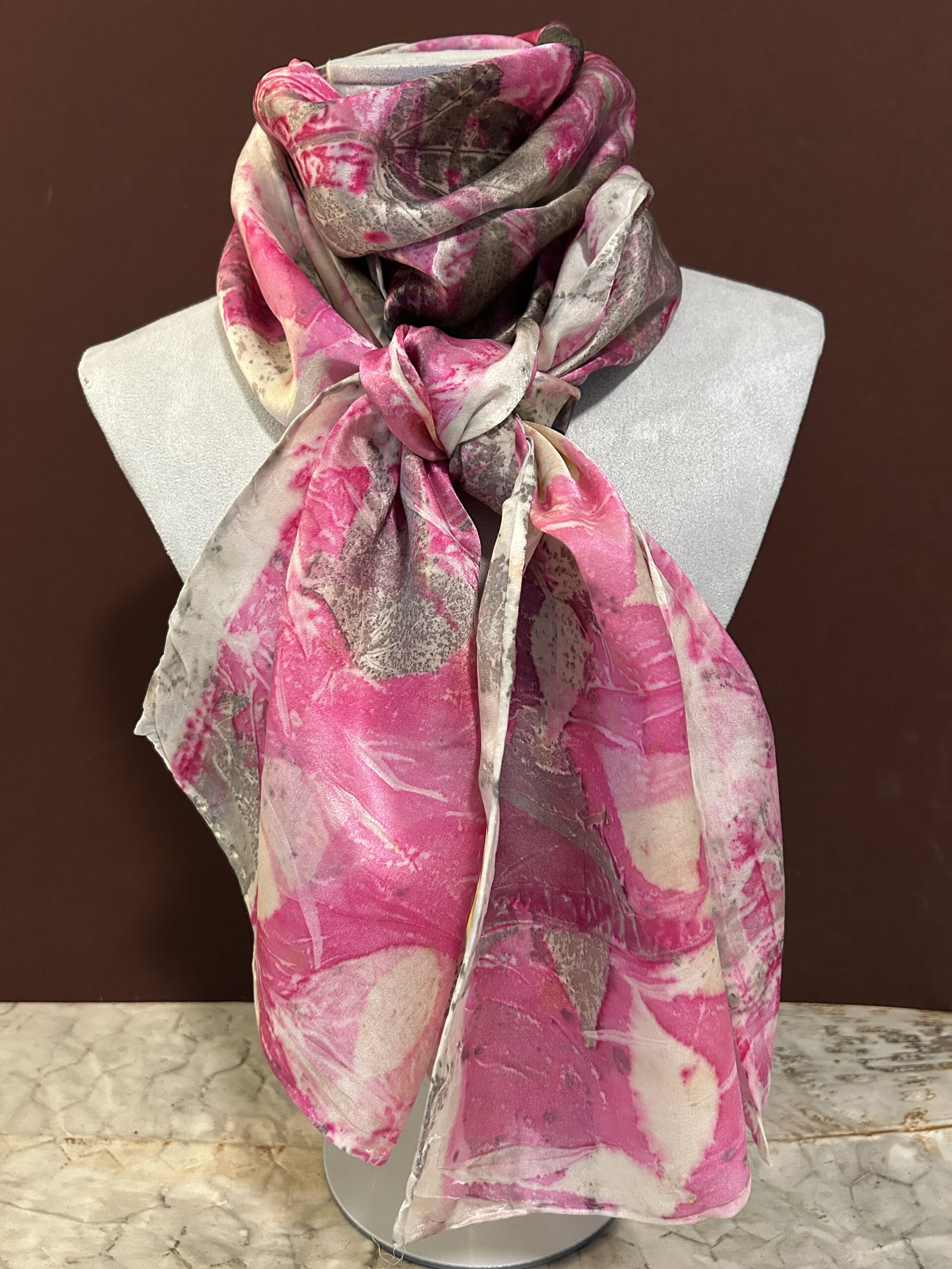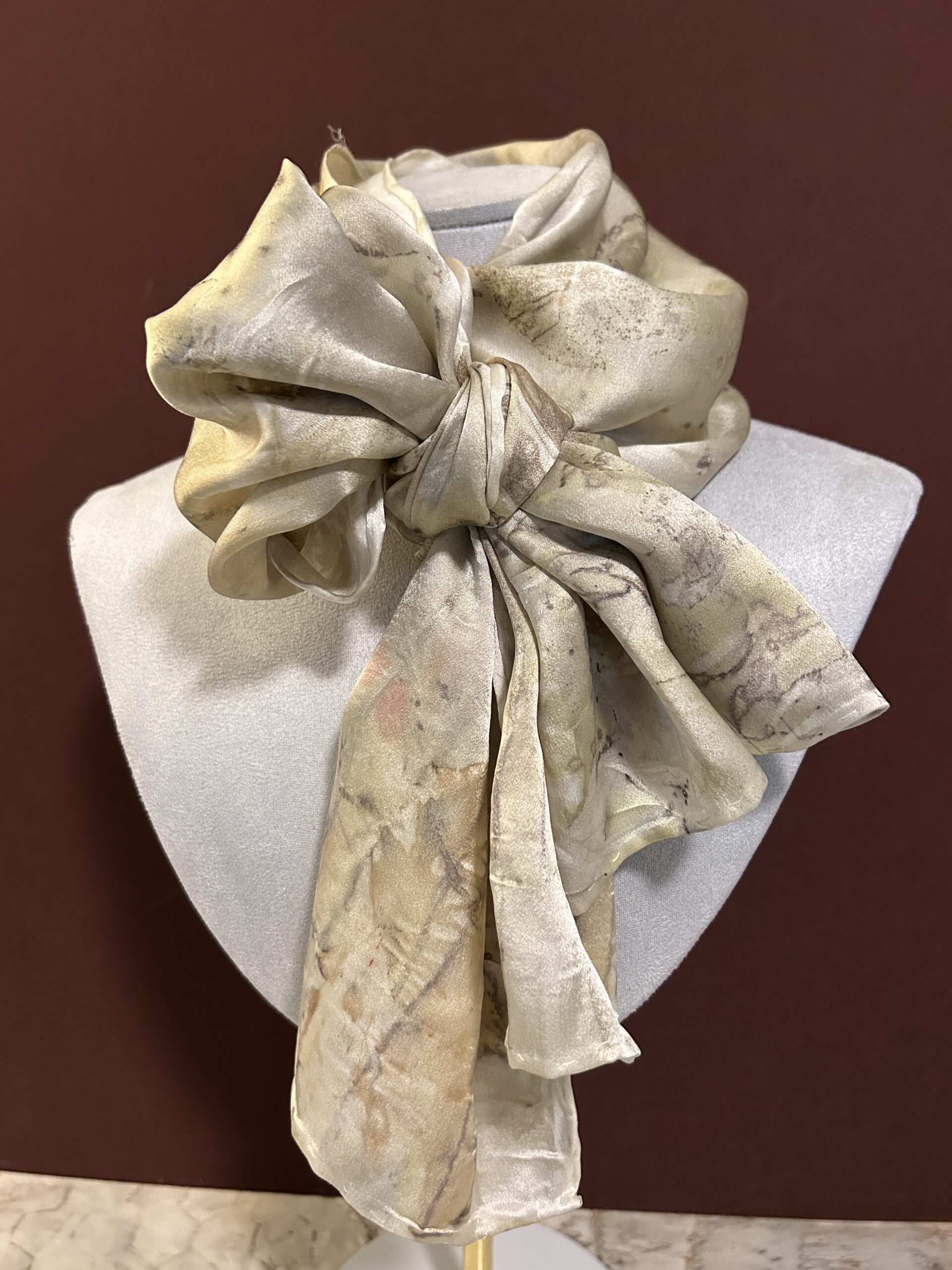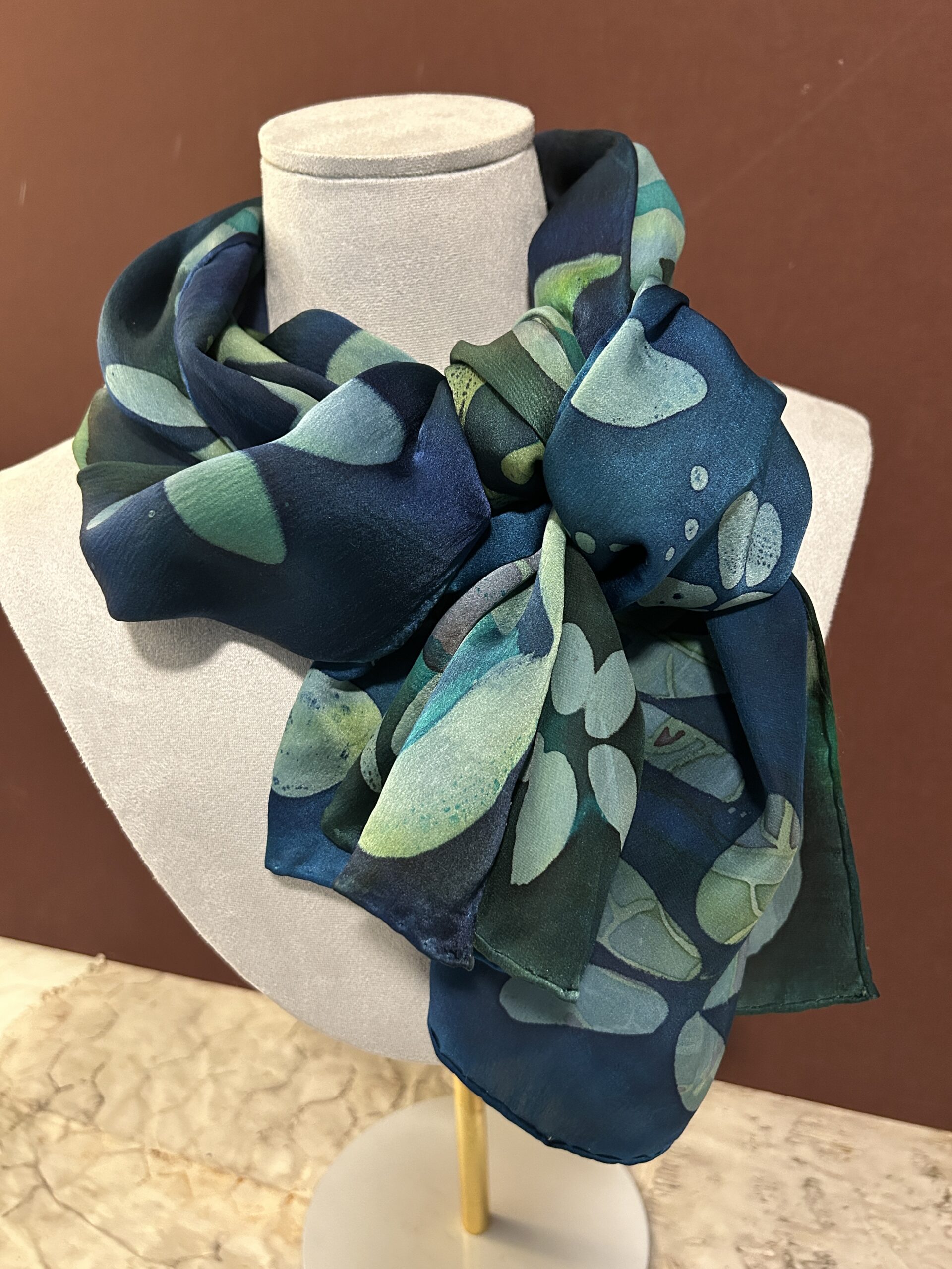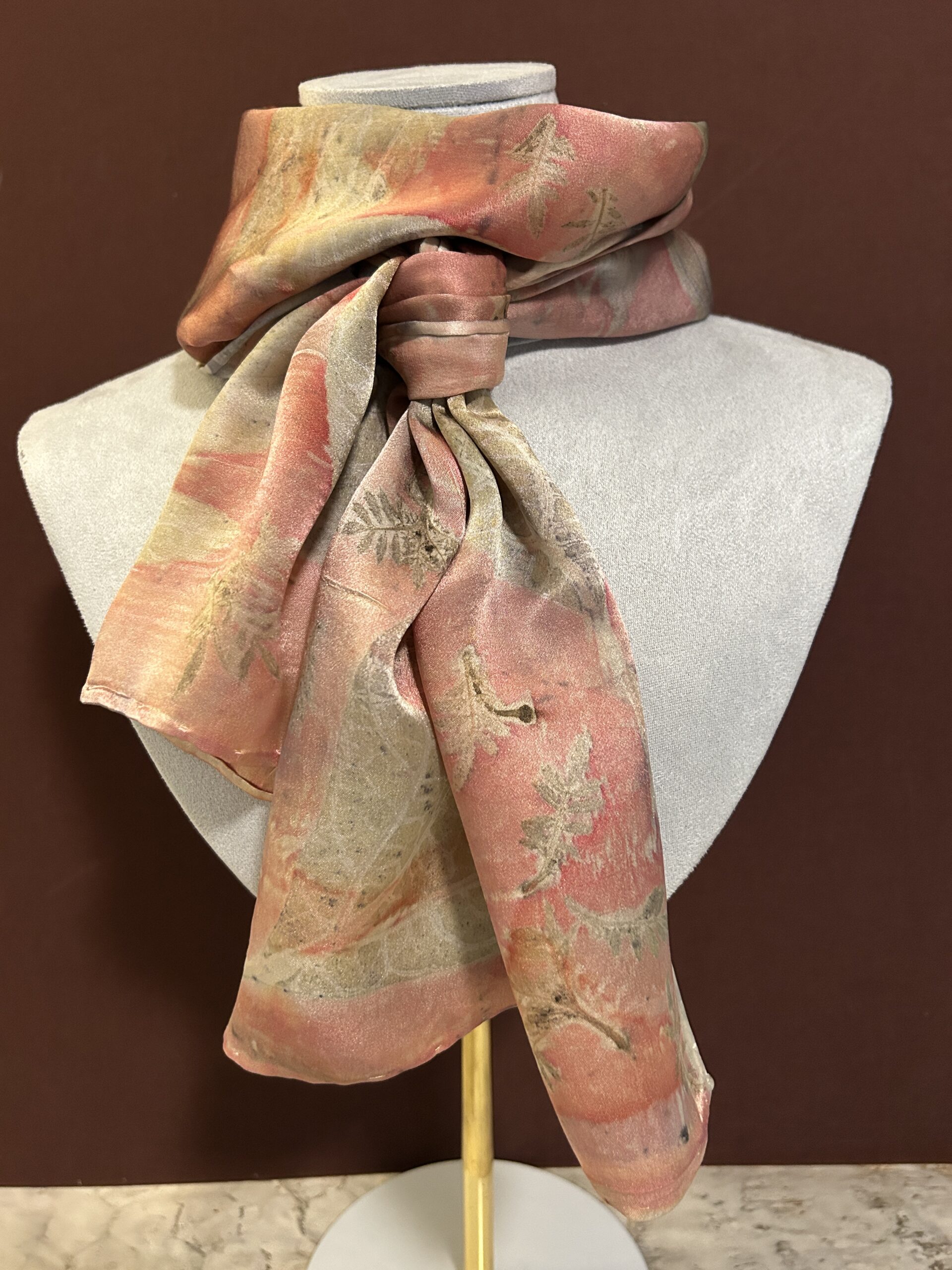 As a fiber artist, my work centers around the arts of eco printing, hand dyeing, and silk painting to craft exquisite art pieces, textiles, and home decor. My primary focus lies in utilizing hand dyeing and eco printing techniques, employing leaves to imprint on natural fibers such as paper, silk, cotton, and paper. Through the process of pressing these leaves between layers of fiber and treating them in a heated dye bath, the tannins are released, creating intricate prints on the fibers. My collection features luxurious, eco-printed silk scarves, garments, and vintage linens, alongside fine art prints that bring unique beauty to your home.