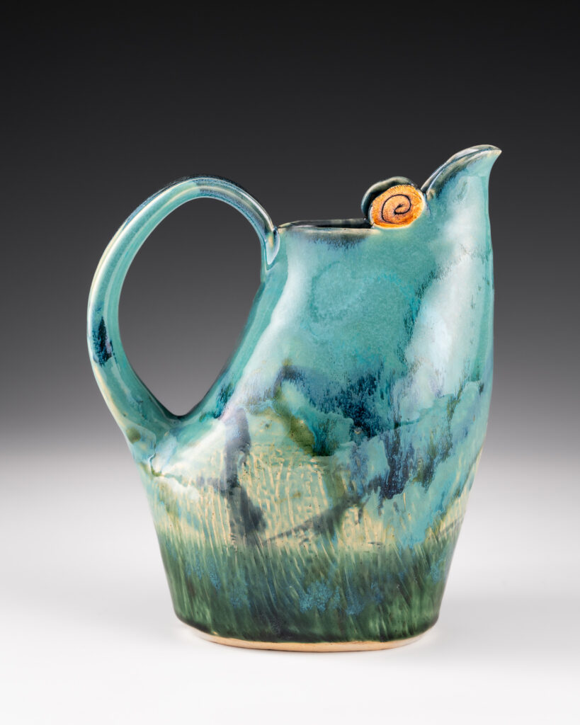 Lisa throws and hand builds her pottery and often integrates both methods to create her functional pottery, sculpture and clay wall art. She emphasizes the malleable qualities of clay by stretching, altering and texturing her work while it is still wet. She welcomes and encourages the happy accidents that take place in the making and in the firing process. Lisa’s grandfather, Nick Guarnaschelli, was an artist and a tailor. Lisa often uses scraps of fabric saved from her grandfather’s shop to imprint texture and designs onto her work in clay. She also uses various found objects including rocks, shells, vintage jewelry and more to add to her clay wall pieces. This connection to her past is a major source of inspiration for Lisa. Texture and form as a means of communicating a point of view is critical to her work in clay. Currently her work explores and emphasizes the contrast between raw, earthy, stretched and textured slabs of clay and smooth and polished wheel thrown and altered glazed forms. Her work is made from white stoneware clay and is fired to at least 2300 degrees Fahrenheit. To highlight spontaneity in her work, she often experiments with various types of firing including wood, soda, salt, pit and electric firing. Her functional work is microwave and dishwasher safe and the fact that people can use and enjoy her work in their everyday lives is very important to her.
