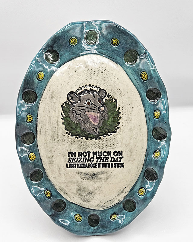 Whimsical ceramic sculptures with functional hand built pottery. It is best to just email me and let me know what you are looking for. I have been making mostly mugs, wall plaques, magnets, and ornaments. I also have items for sale in Mighty Mud’s retail gallery.