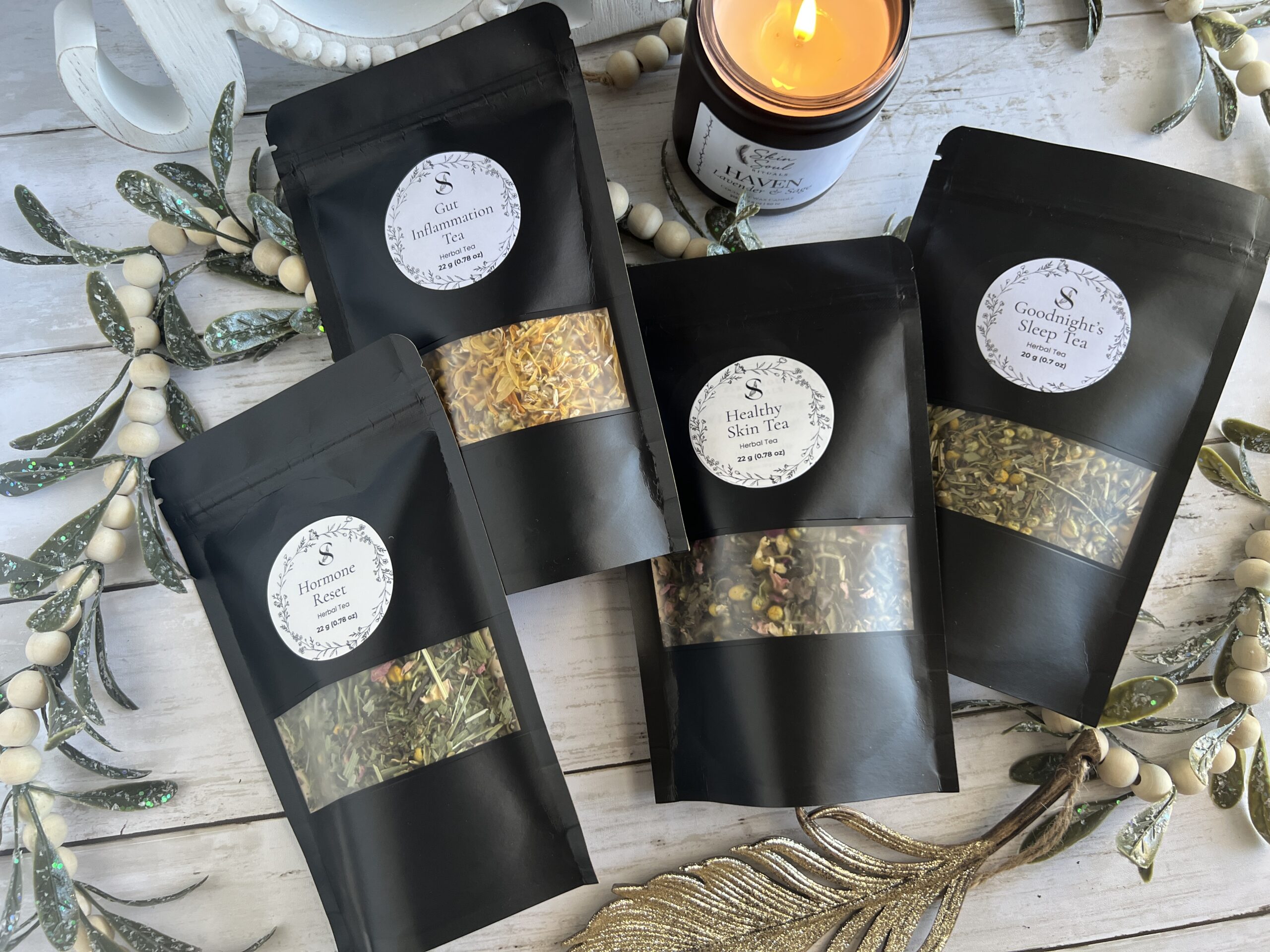 Our offerings include facial oils, scalp treatments, magnesium body care, herbal tea blends, and clean-burning candles, all designed to fit into a 5-minute daily ritual. Skin Soul Rituals is for women who want effective, non-toxic self-care that feels nourishing, not complicated.